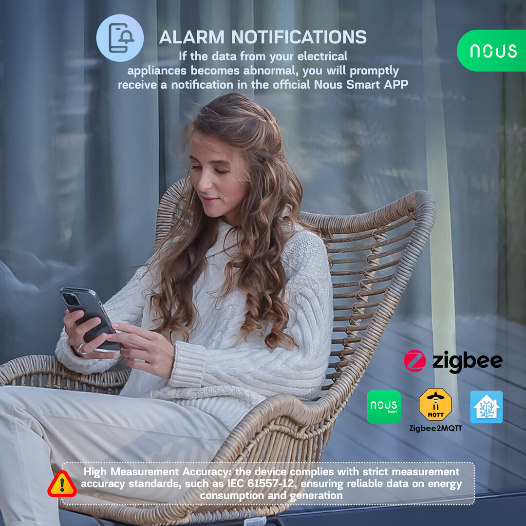 De Nous D4Z is een krachtige (3 x 120A) slimme vermogensmeter uitgerust met een Zigbee Tuya-chip, die contactloze driefasemeting ondersteunt. Hij is compatibel met de Tuya/SmartLife smart home APP. Hij kan worden gekoppeld aan een Nous E1 of andere Tuya/SmartLife Zigbee-gateways.