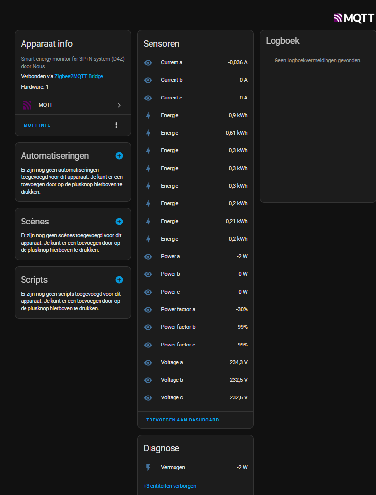Bekijk onze review over deze meter binnen Home Assistant Zigbee2MQTT.
