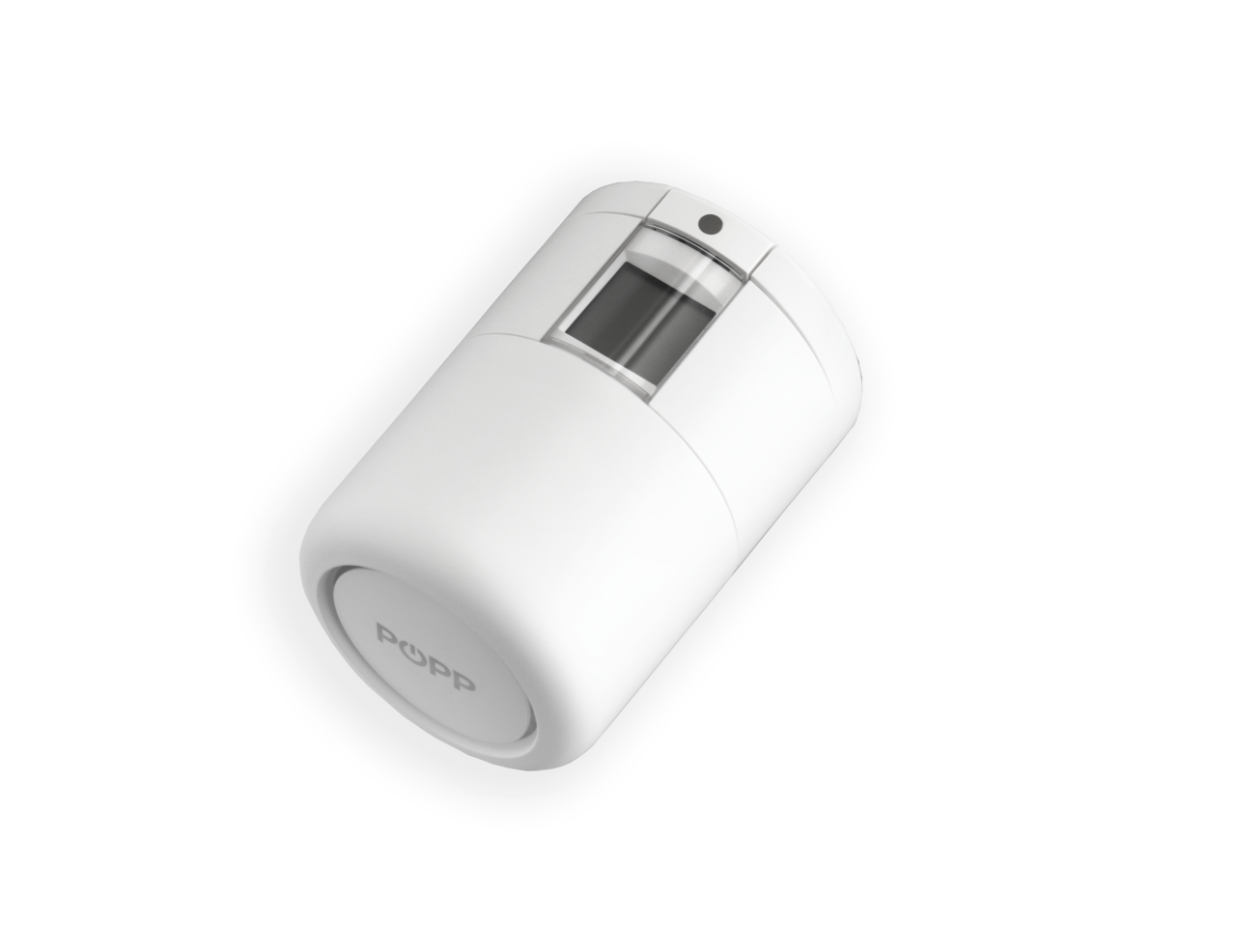 Dankzij de ingebouwde temperatuursensoren detecteert de POPP Slimme Thermostaat de exacte kamertemperatuur. De adaptieve leerfunctie detecteert de grootte van de kamer en past de klepsturing aan.